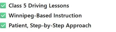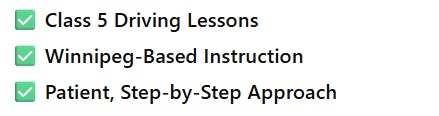 Calm, confidence-building driving lessons for new and advanced drivers in Winnipeg